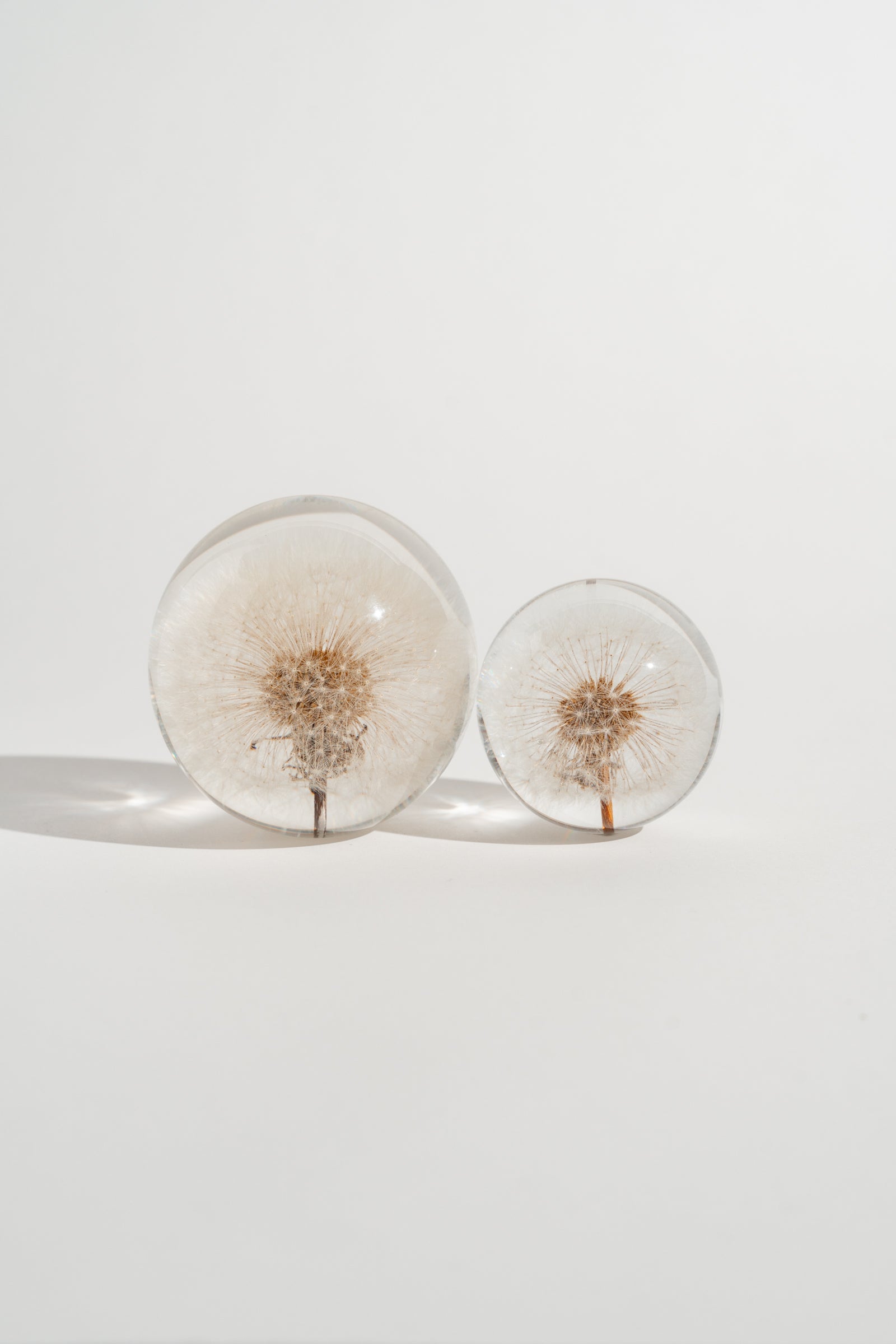 Each resin orb is meticulously handcrafted, featuring a real Dandelion delicately preserved within crystal-clear resin for a timeless and elegant appeal.